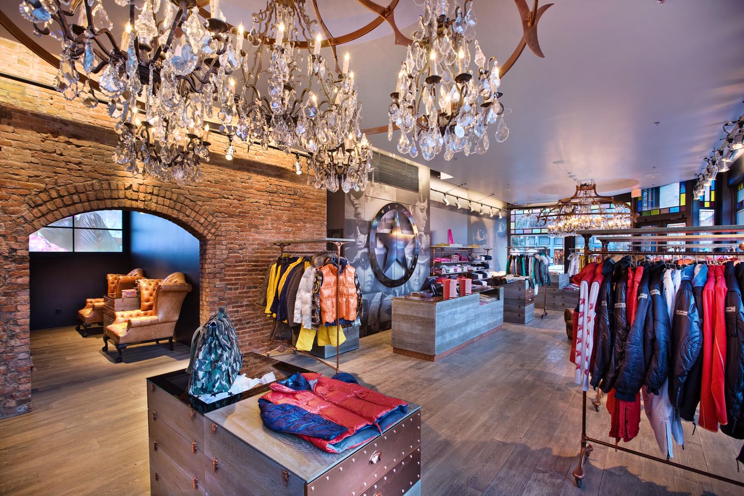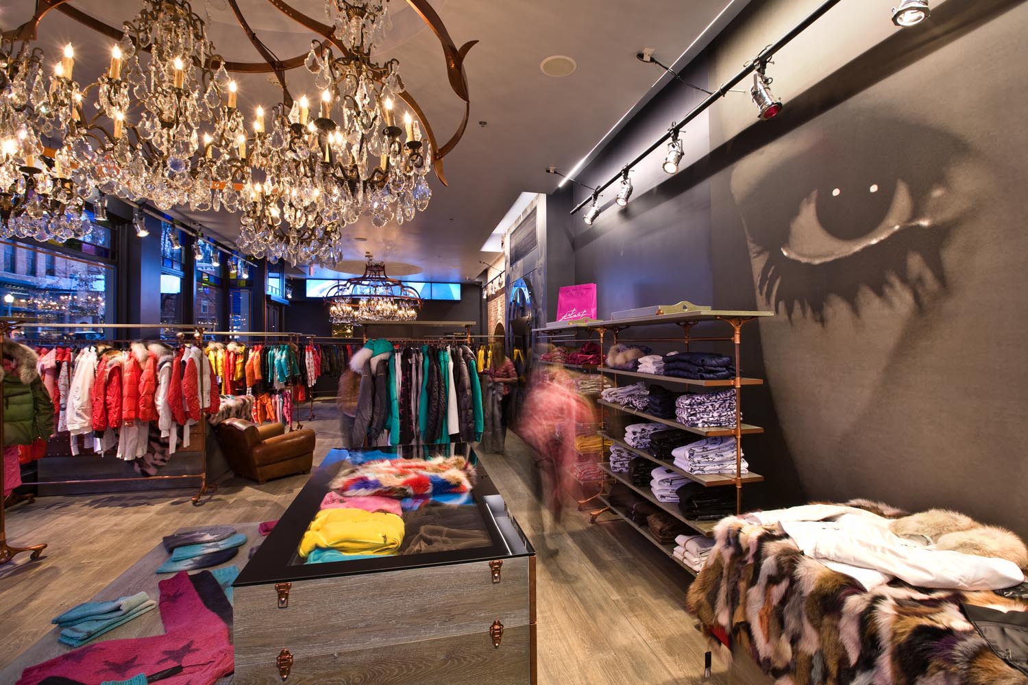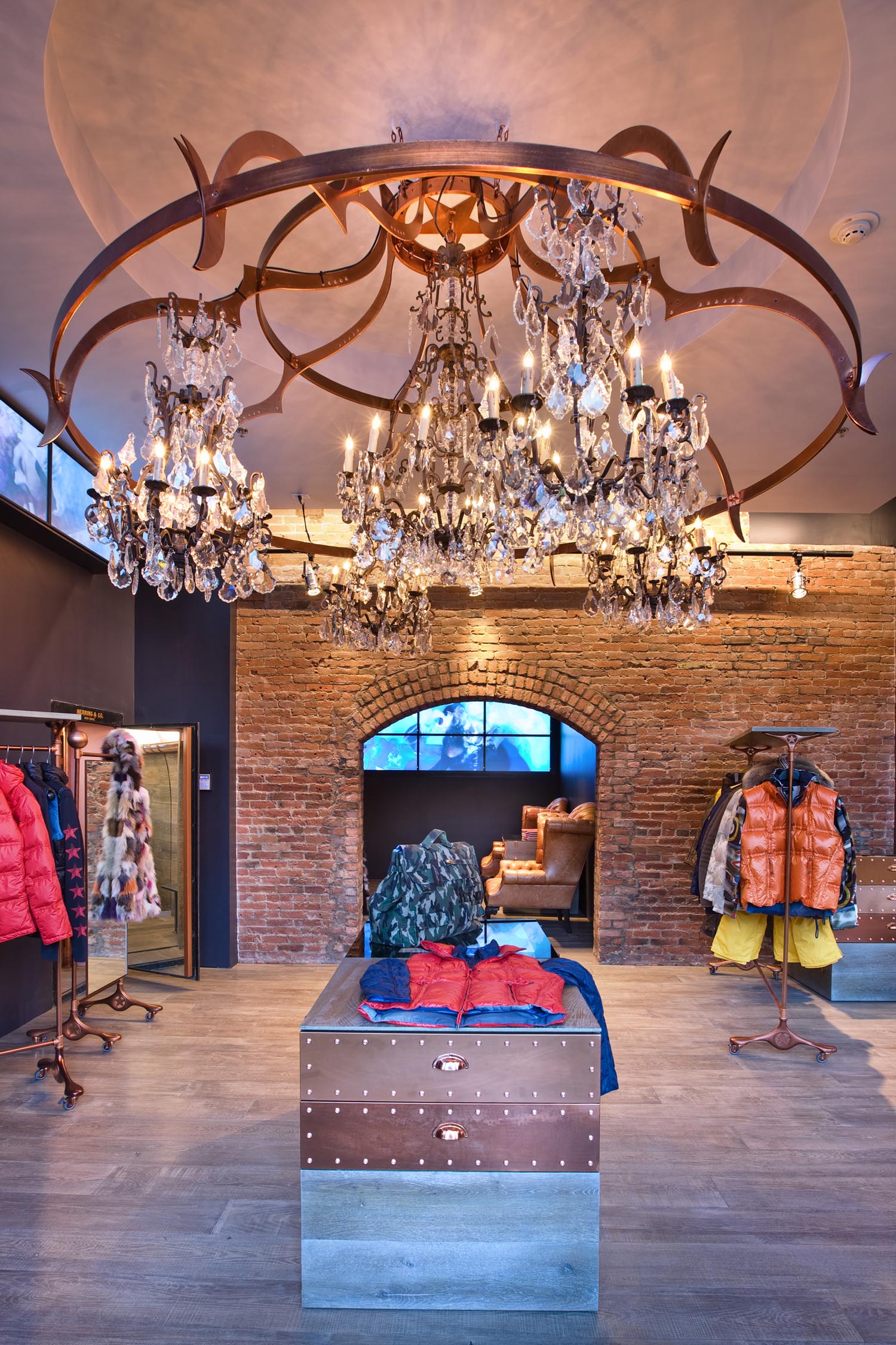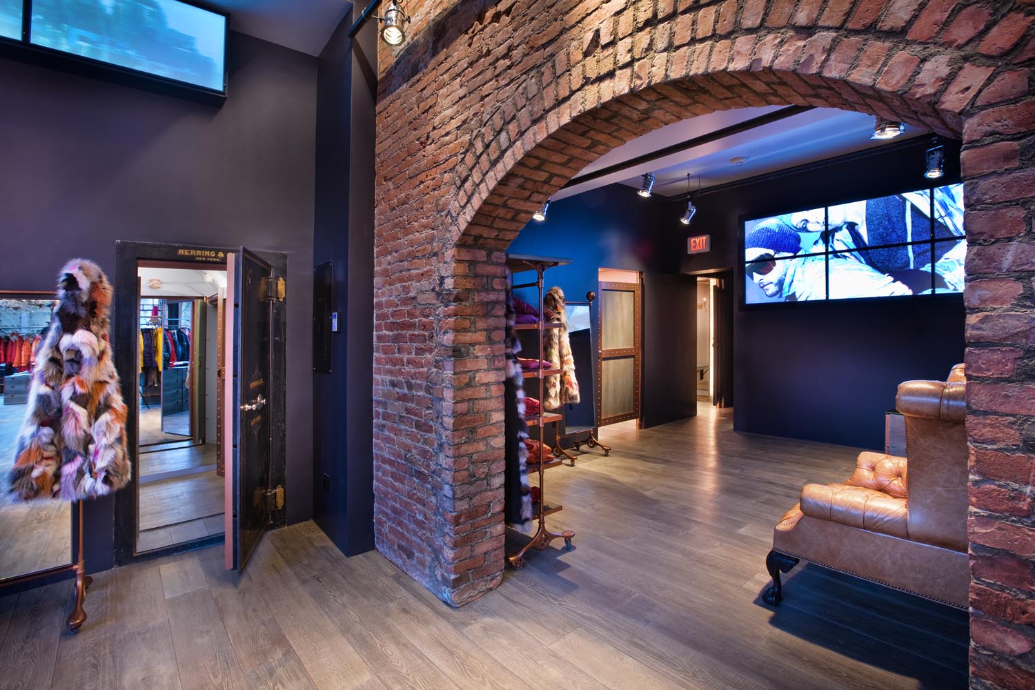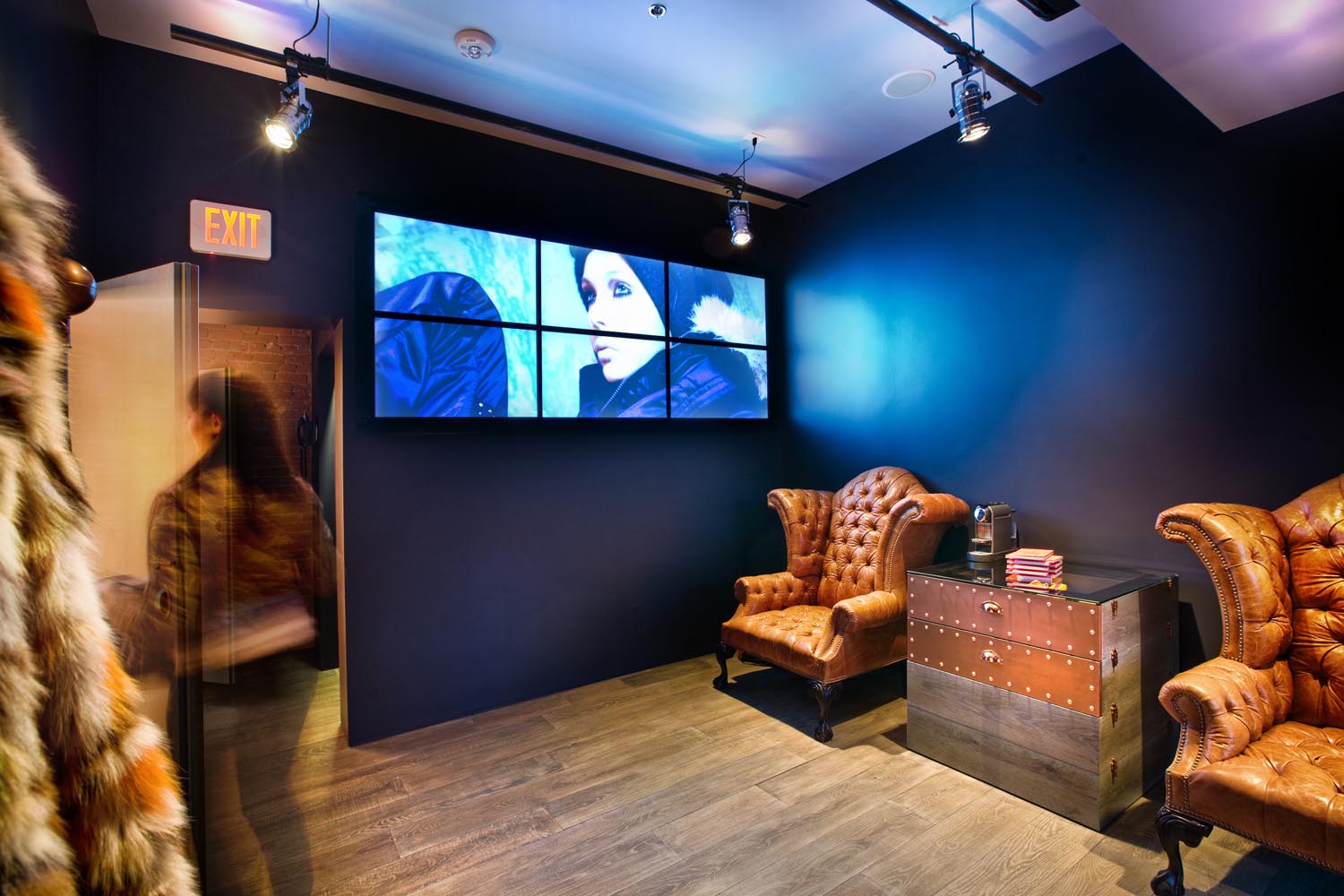 - Crafted by European architects, this 1,500 sq. ft. chic setting exudes sophistication, featuring wood floors that add warmth and character to the space. The dramatic ambiance is enhanced by black walls juxtaposed with an exposed brick wall, creating a captivating contrast. Specialized chandelier lights cast an enchanting glow, strategically placing the customer "on stage" within this stylish environment. This design fusion effortlessly combines European elegance with modern flair, offering a captivating experience that elevates any visit.