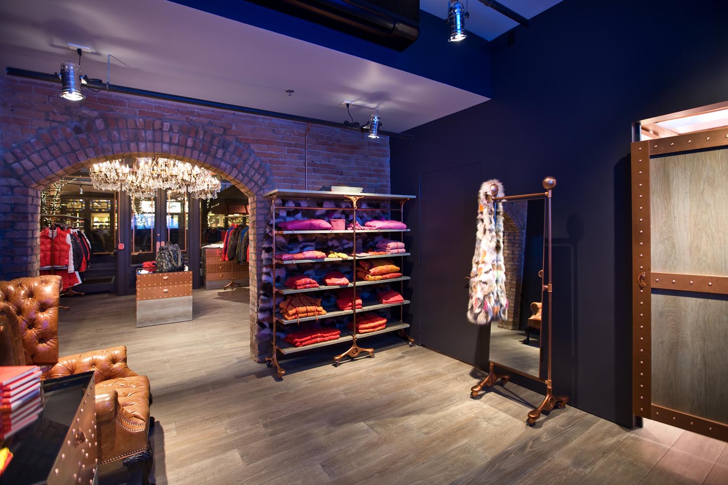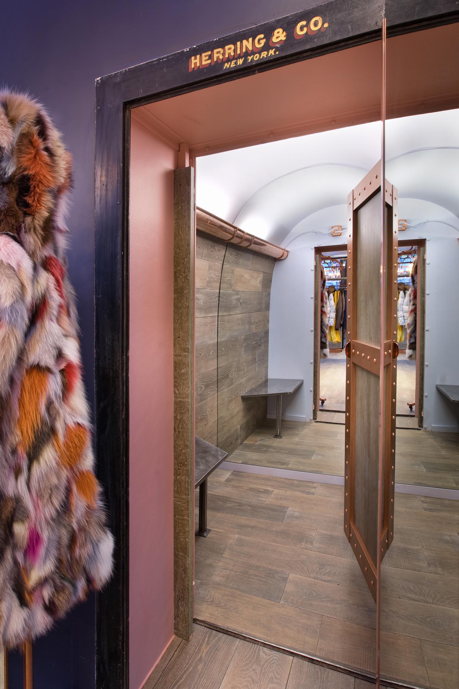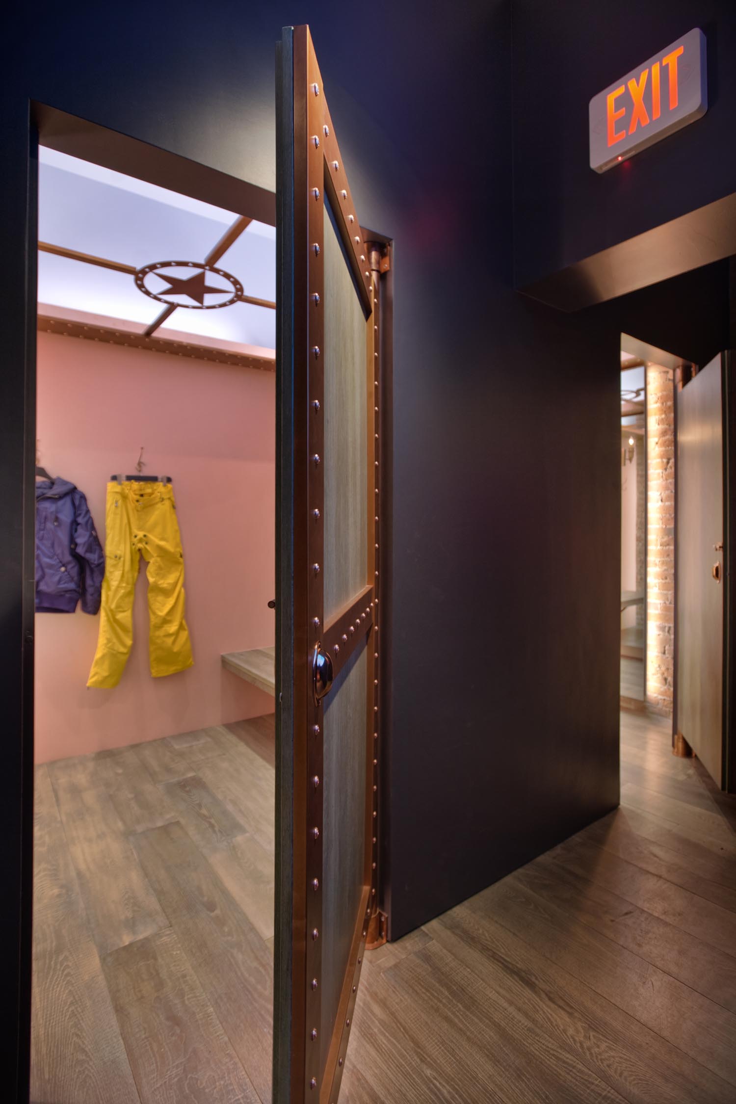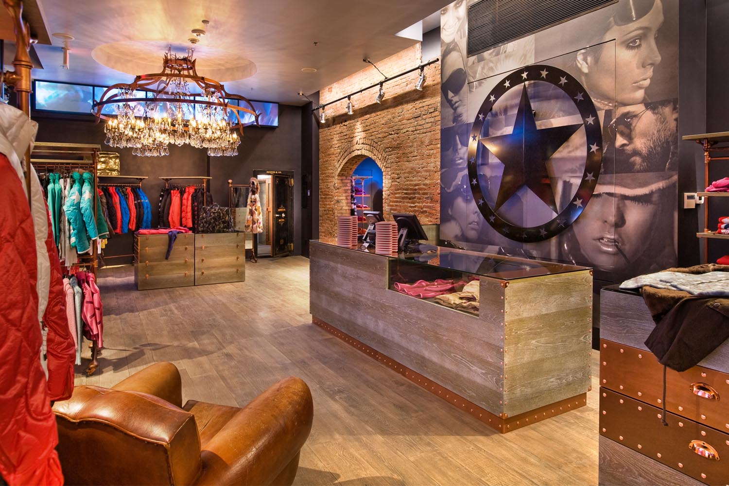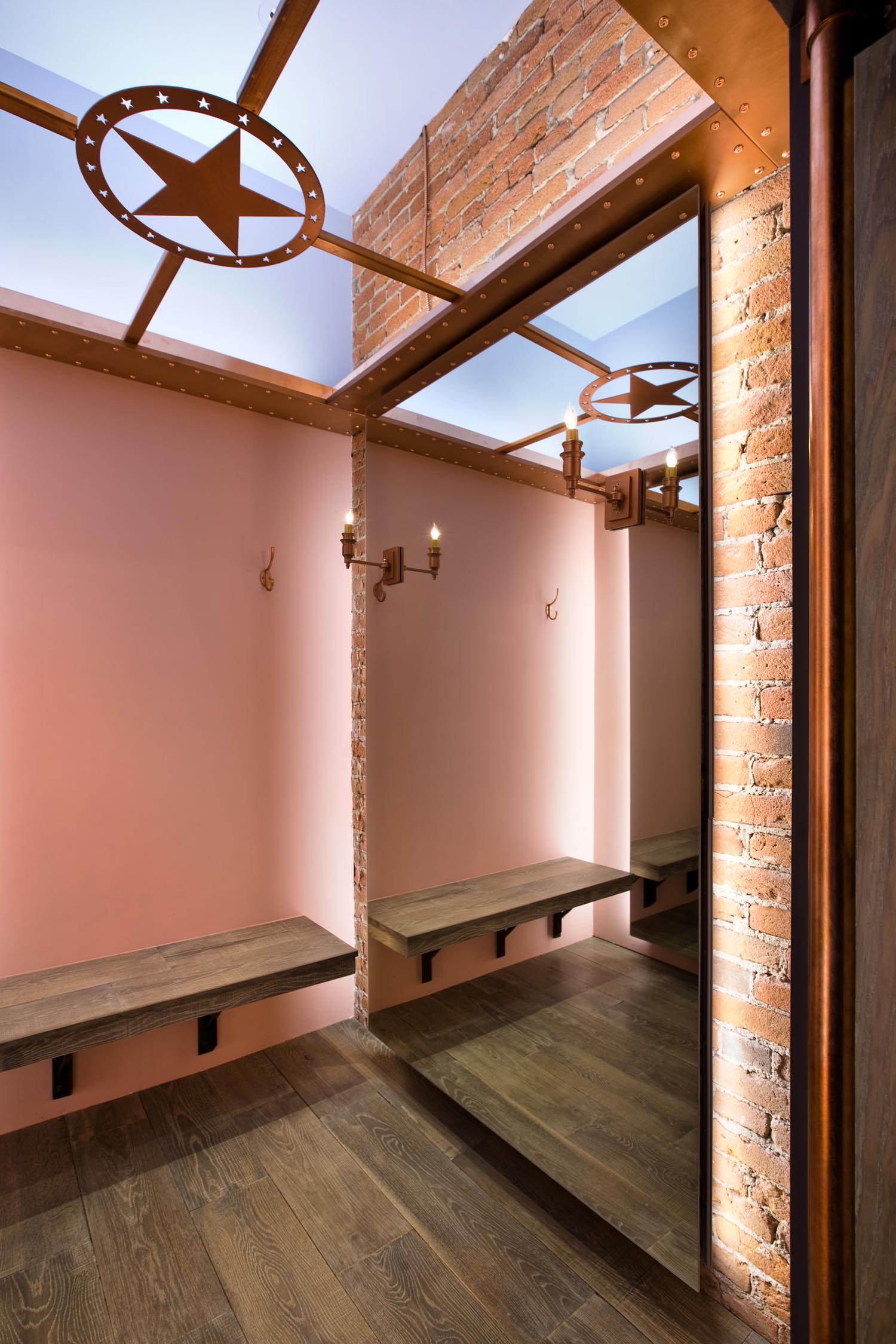 - Crafted by European architects, this 1,500 sq. ft. chic setting exudes sophistication, featuring wood floors that add warmth and character to the space. The dramatic ambiance is enhanced by black walls juxtaposed with an exposed brick wall, creating a captivating contrast. Specialized chandelier lights cast an enchanting glow, strategically placing the customer "on stage" within this stylish environment. This design fusion effortlessly combines European elegance with modern flair, offering a captivating experience that elevates any visit.