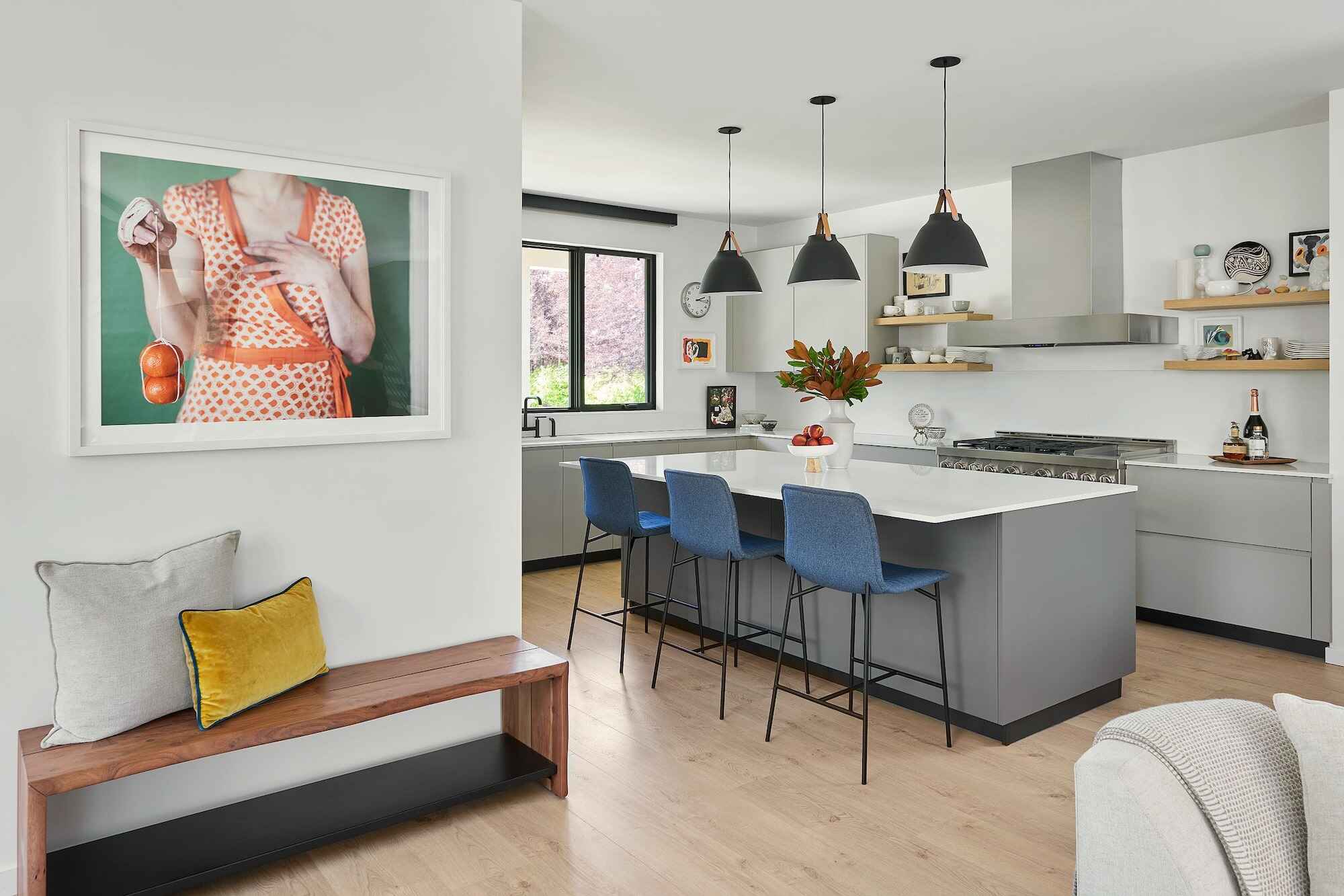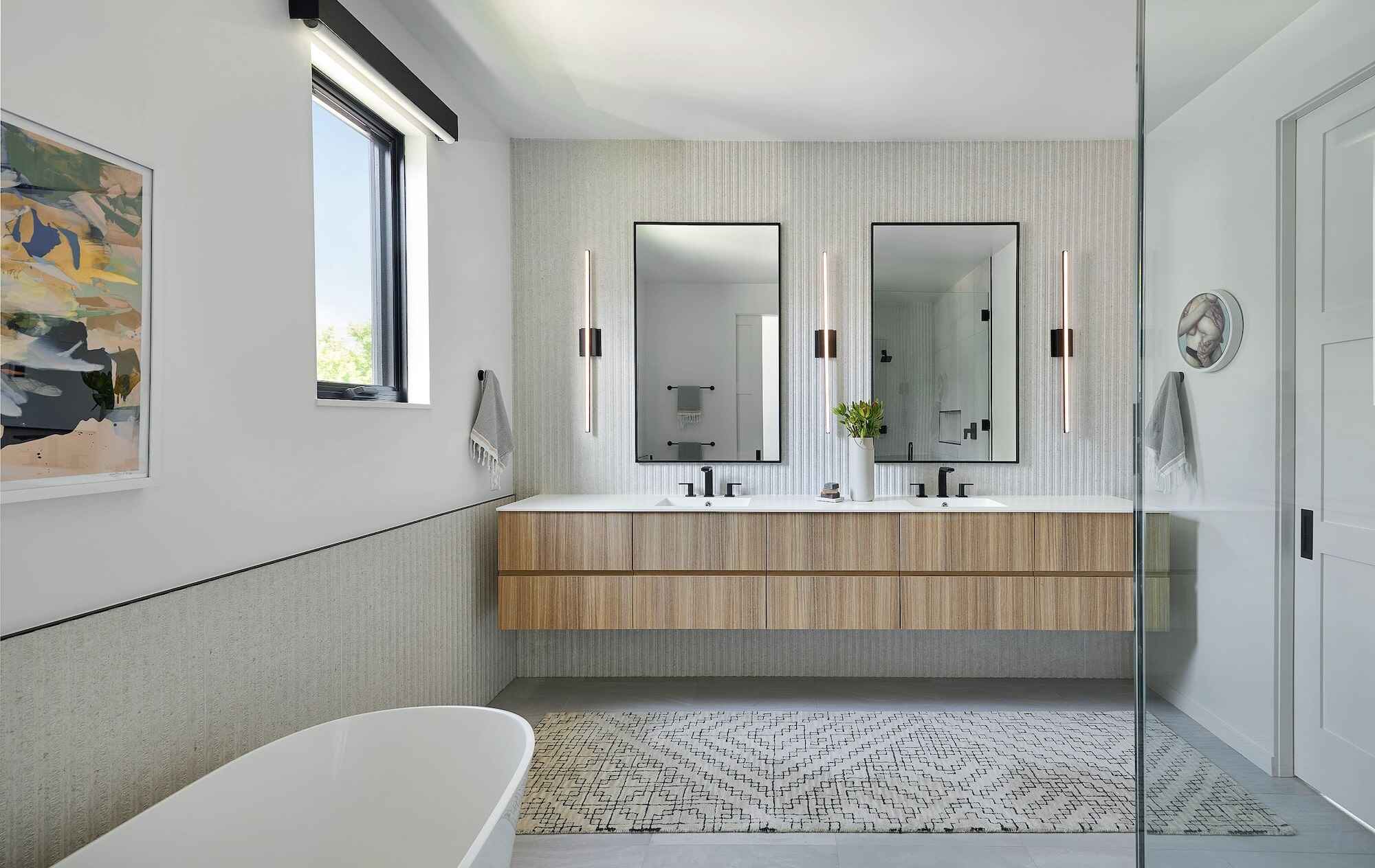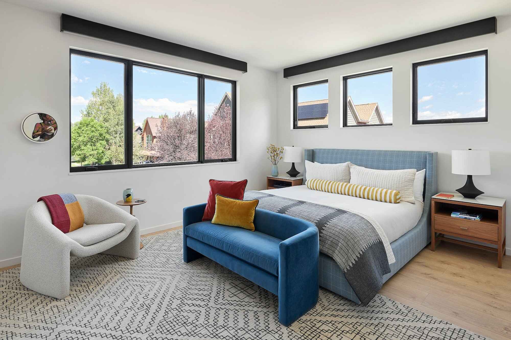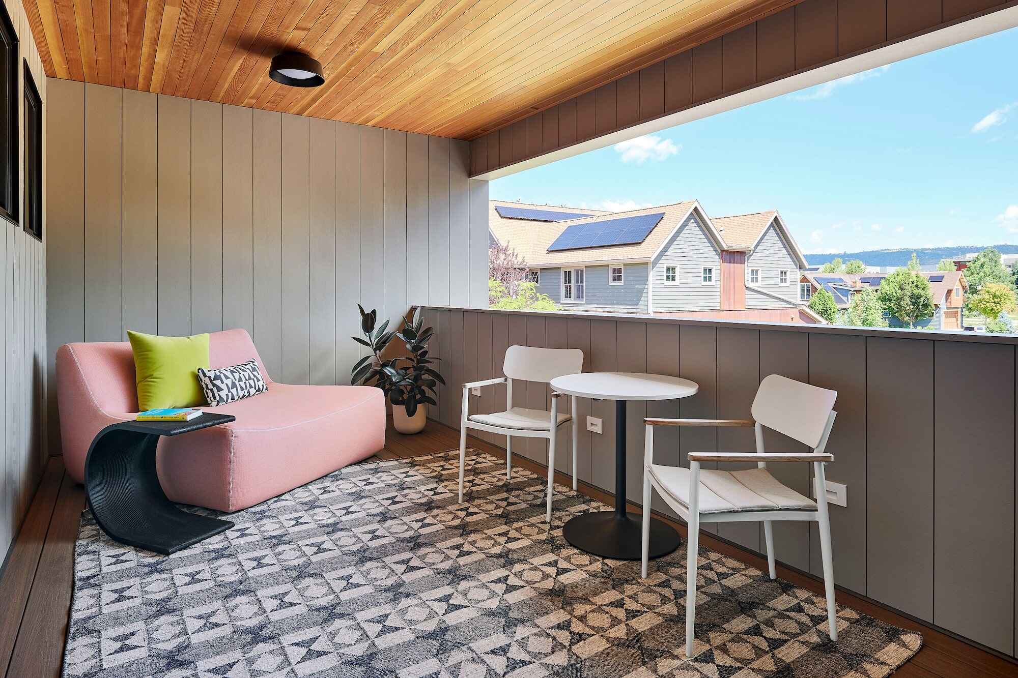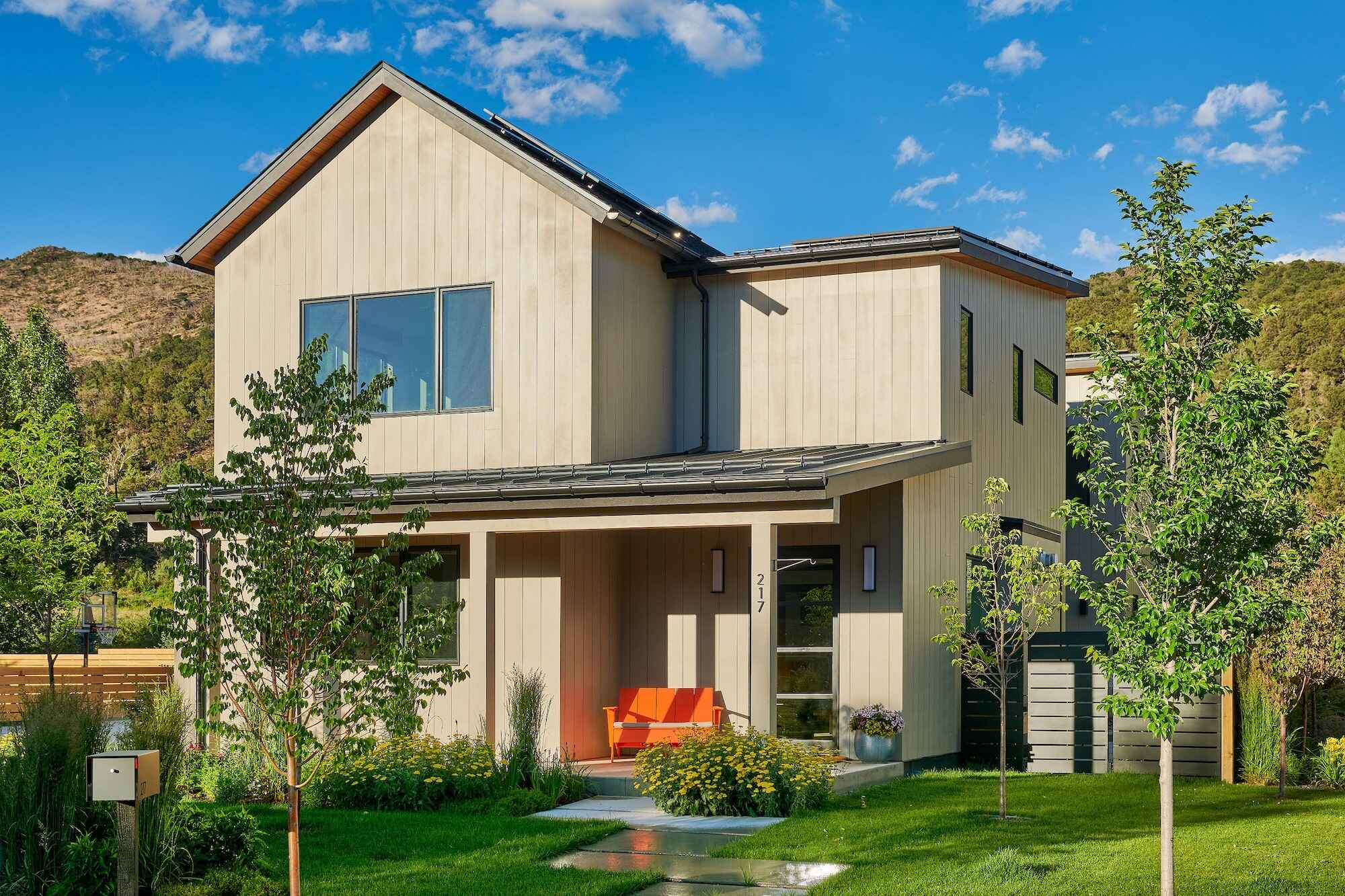 - This single-family residence centers its social spaces with clean lines and intuitive design. It flows cleanly from the glass front door to the back courtyard, featuring a custom fire pit and expansive patio space. Sliding doors and a balcony welcome in sunlight, and its crisp white walls add to the airy feeling of the open living-dining room space. Floating stairs contribute to its contemporary vibe, tempered by the welcoming warm woods found throughout the home.