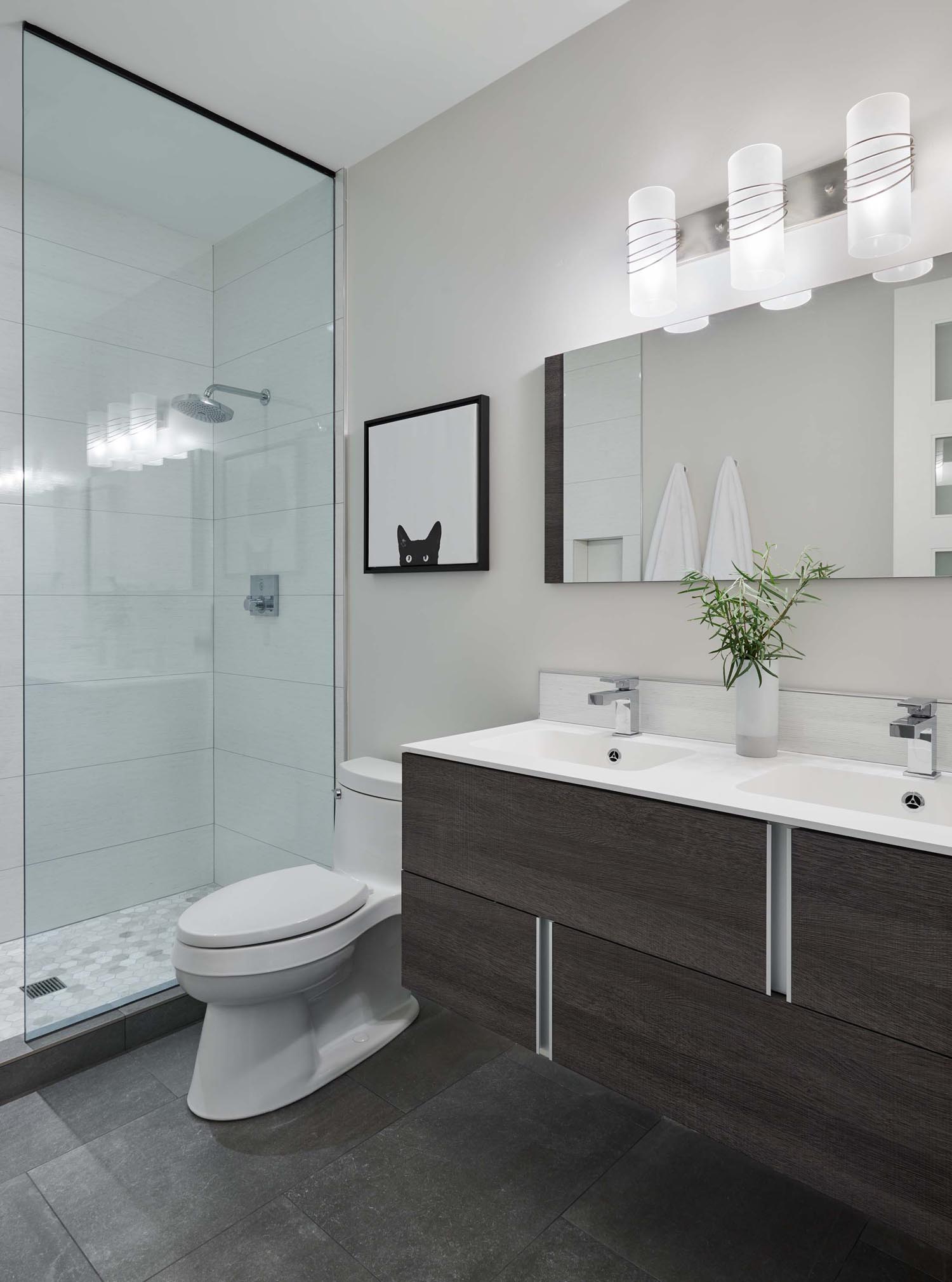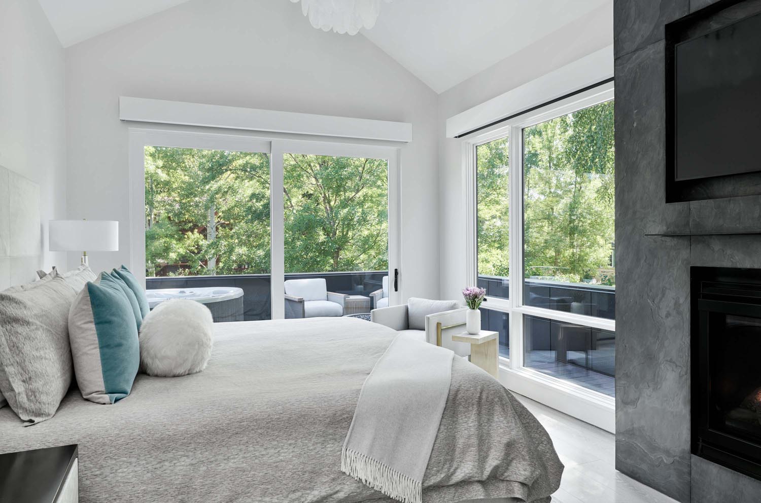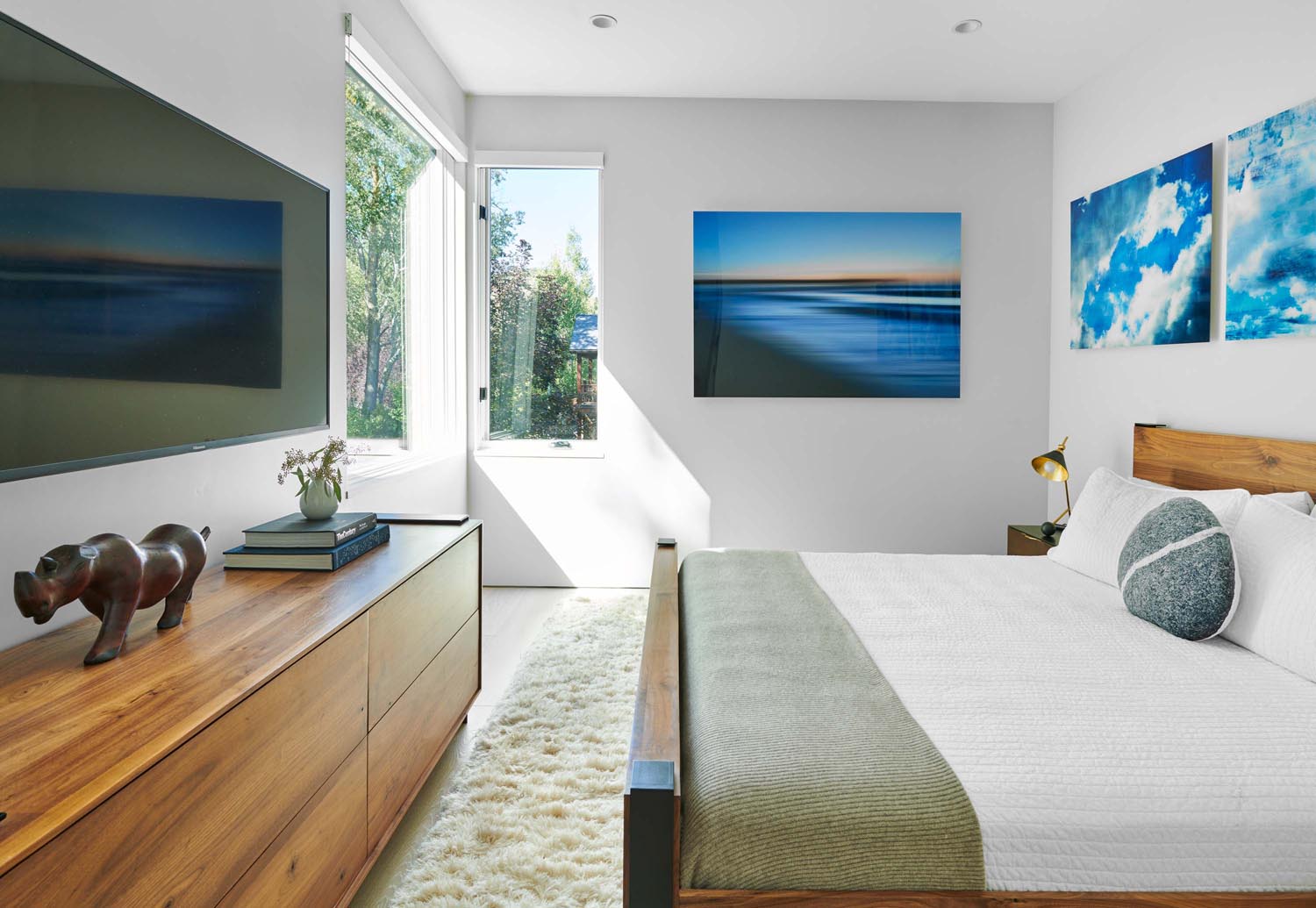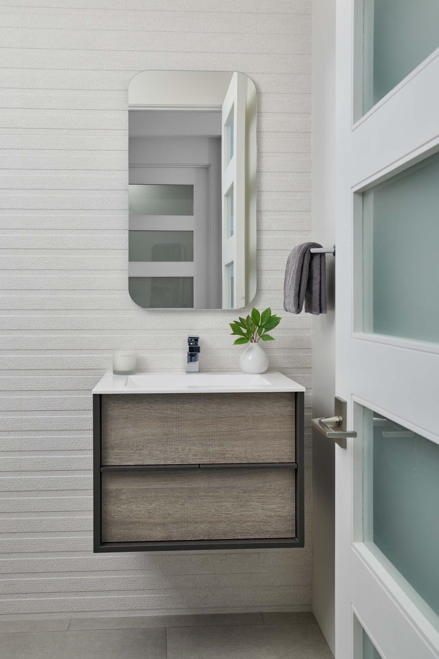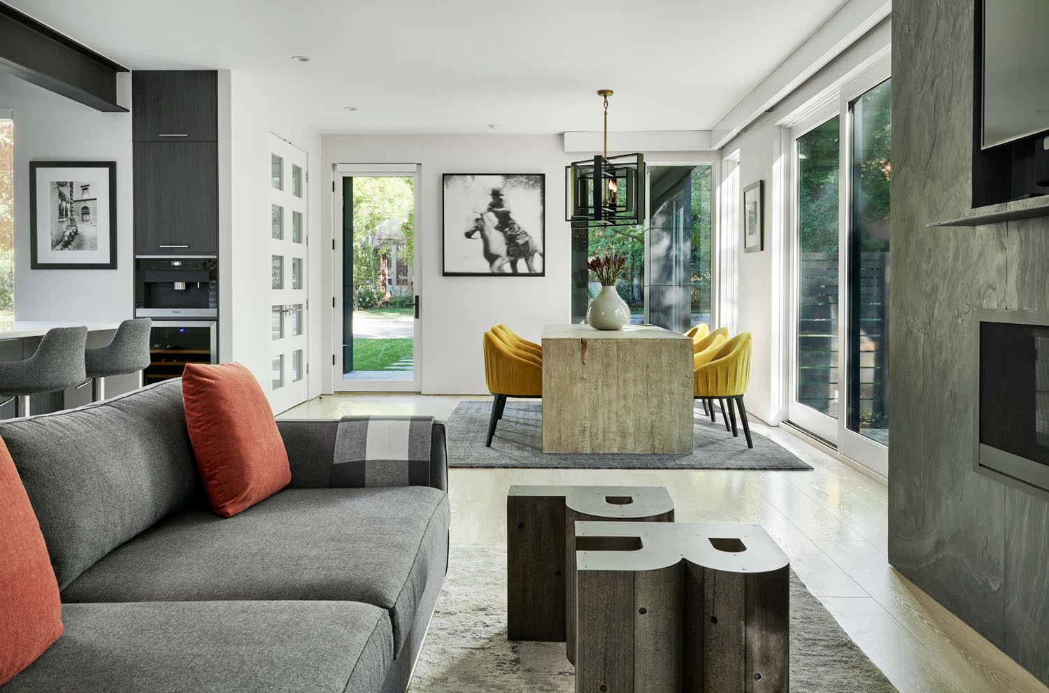 - This duplex showcases a distinctive blend of modern design and natural materials. The exterior features a harmonious combination of wood, white siding, and striking black overhangs adding a dynamic architectural interest. Inside, the white walls create a bright and spacious feel, contrasted by dark grey and stone-colored accents that provide depth and sophistication. Pops of color strategically placed throughout the interior infuse vibrancy and personality into the living spaces, making this home a stylish and contemporary haven with a balanced, cohesive aesthetic.