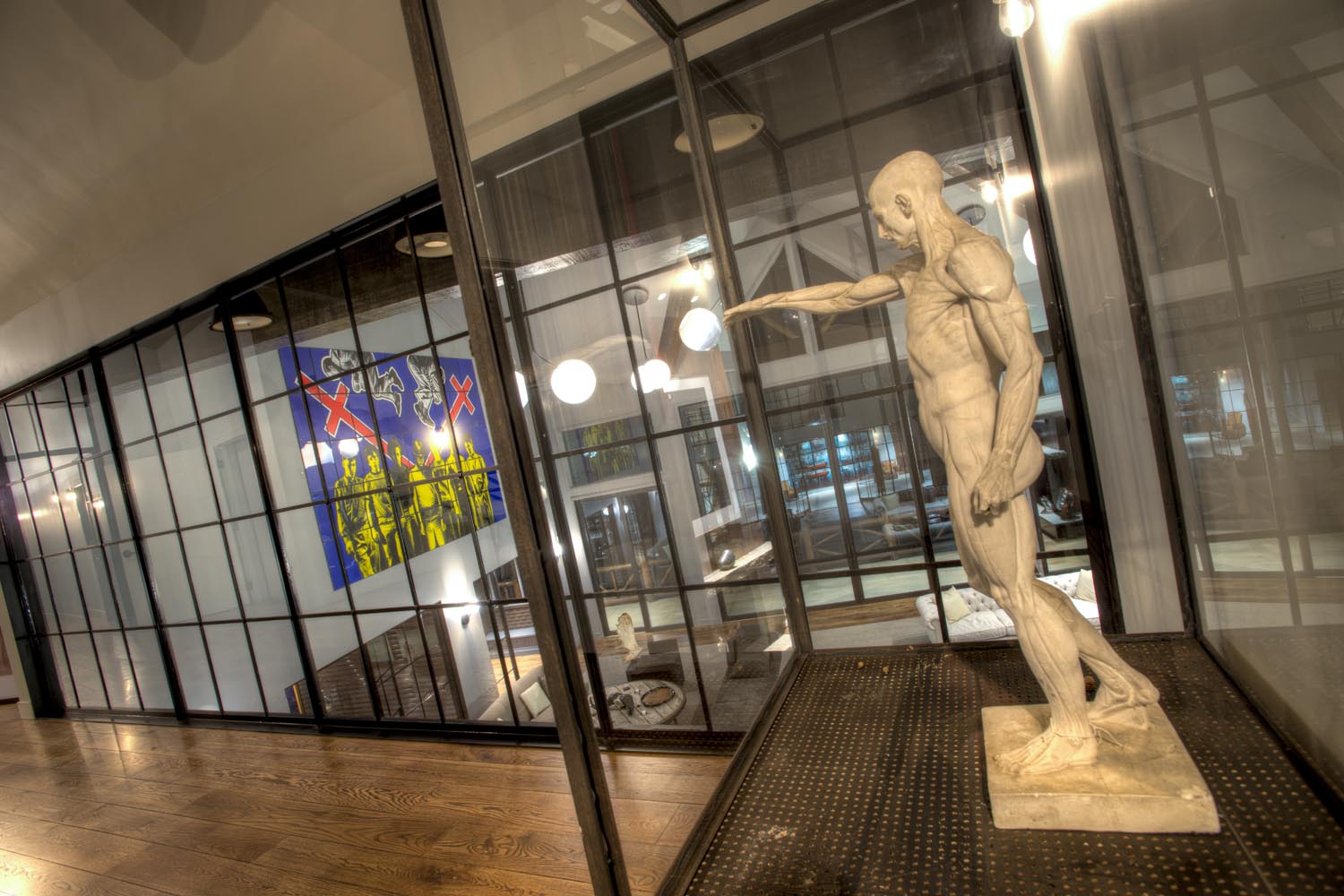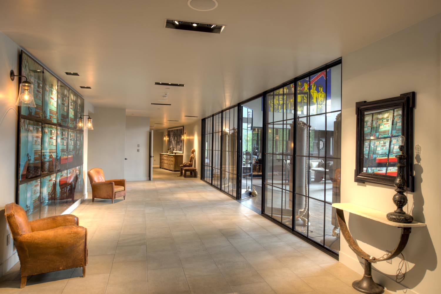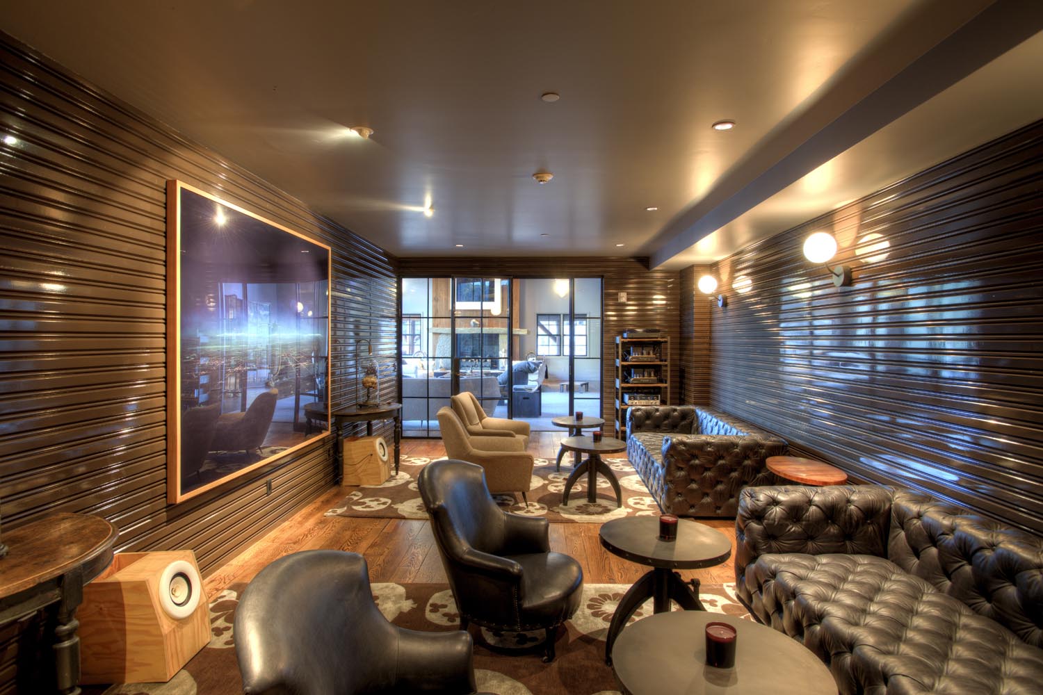 - The Mountain Contemporary home is a spectacular 18,000 sq. ft. river-side residence that marries European influences with modern design. Its angular exterior and vaulted ceilings create a dramatic visual impact, complemented by a large wrap-around deck and a huge glass pane from the second floor overlooking the first. Inside, refined simplicity prevails with hidden kitchen elements and a palette of natural colors like cream, gray, and brown, creating an elegant yet understated ambiance.